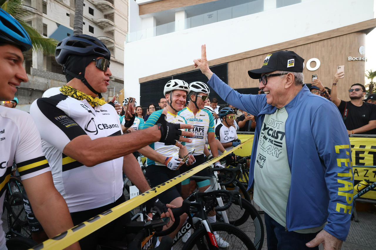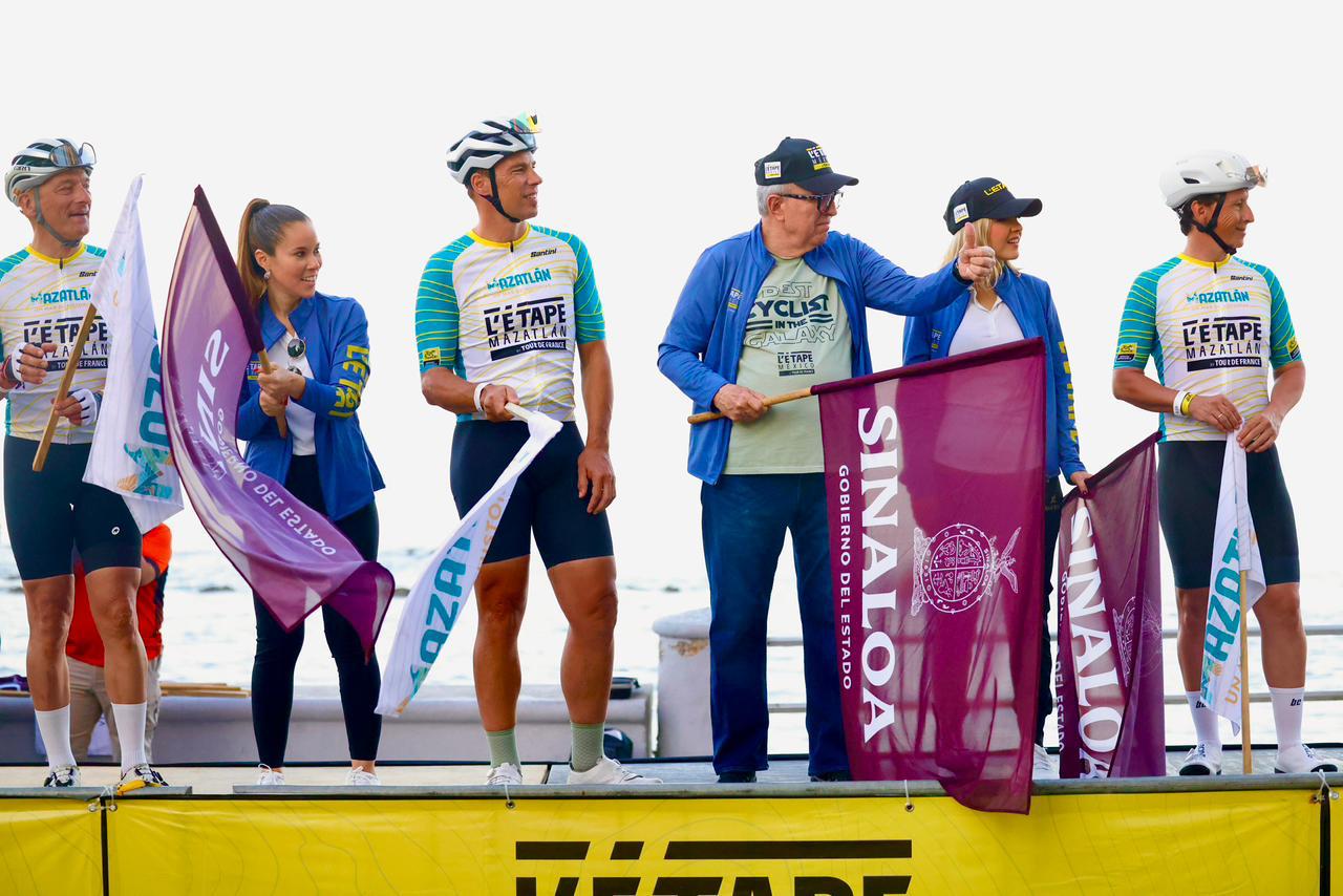 Mazatlán, Sinaloa 9 de noviembre de 2025.- Teniendo como marco las bellas playas del puerto mazatleco, el gobernador Rubén Rocha Moya, junto a los embajadores de L’Étape Mazatlán, los ex ciclistas profesionales españoles Joseba Beloki Aguirrezabalaga, Pedro Horrillo y Fermín Trueba, dio el banderazo de arranque de la carrera ciclista más famosa del mundo L’Étape Mazatlán by Tour de France 2025, que reunió a más de 1200 ciclistas profesionales y amateurs que vivieron la mítica experiencia del Tour de France.