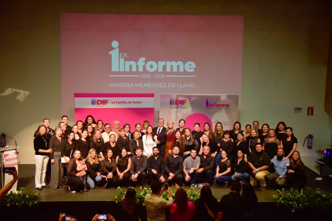 Los Mochis, Ahome, Sinaloa. A 03 de marzo del 2026.- La Presidenta del Sistema DIF Ahome, Marissa Menéndez de Llano, encabezó la presentación del 1er Informe de Actividades DIF 2025-2026, donde subrayó que los logros alcanzados no son sólo números ni estadísticas, sino historias reales de familias que recibieron atención oportuna, cercana y con empatía.