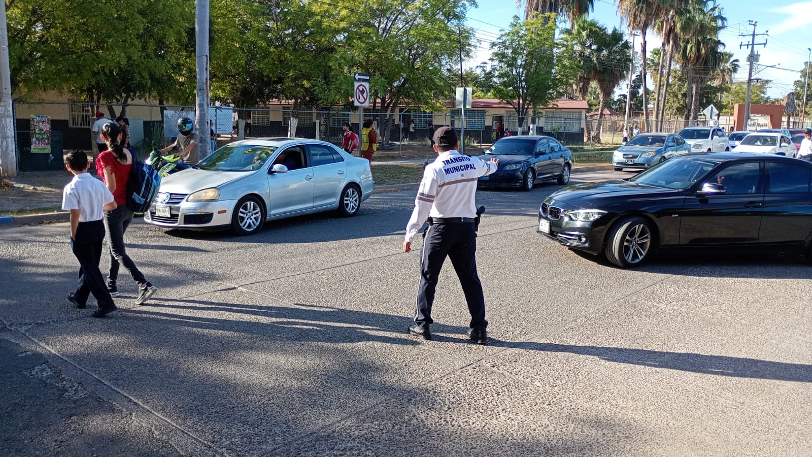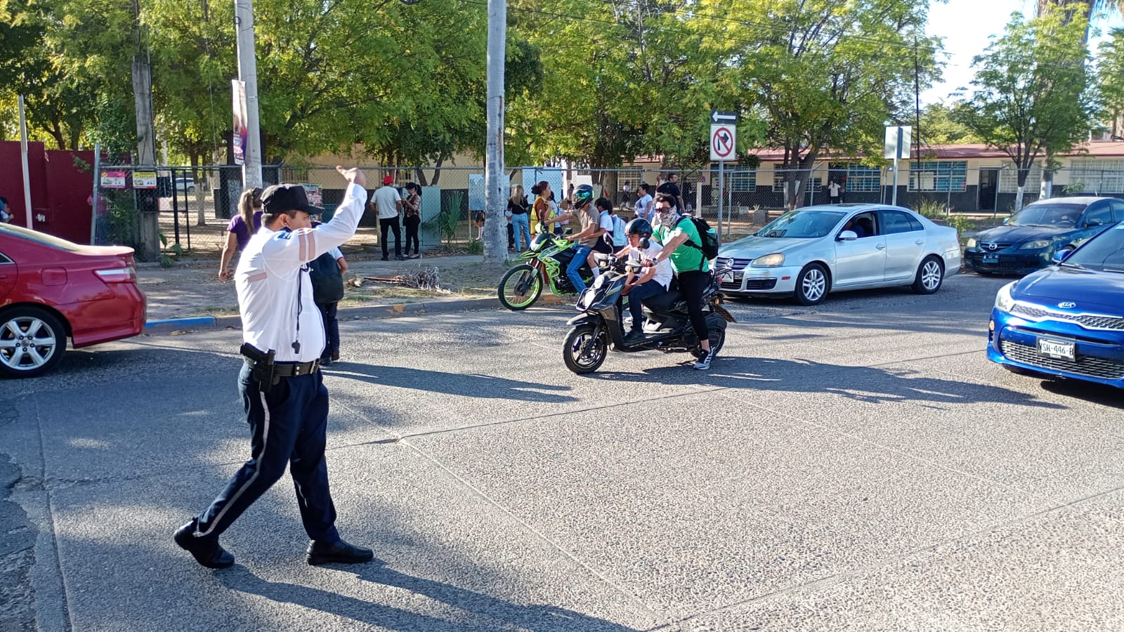 Villegas Achoy puntualizó que los agentes se concentran en agilizar el tráfico y asegurar que el área frente a las escuelas se utilice exclusivamente para el ascenso y descenso rápido, prohibiendo el estacionamiento prolongado.
