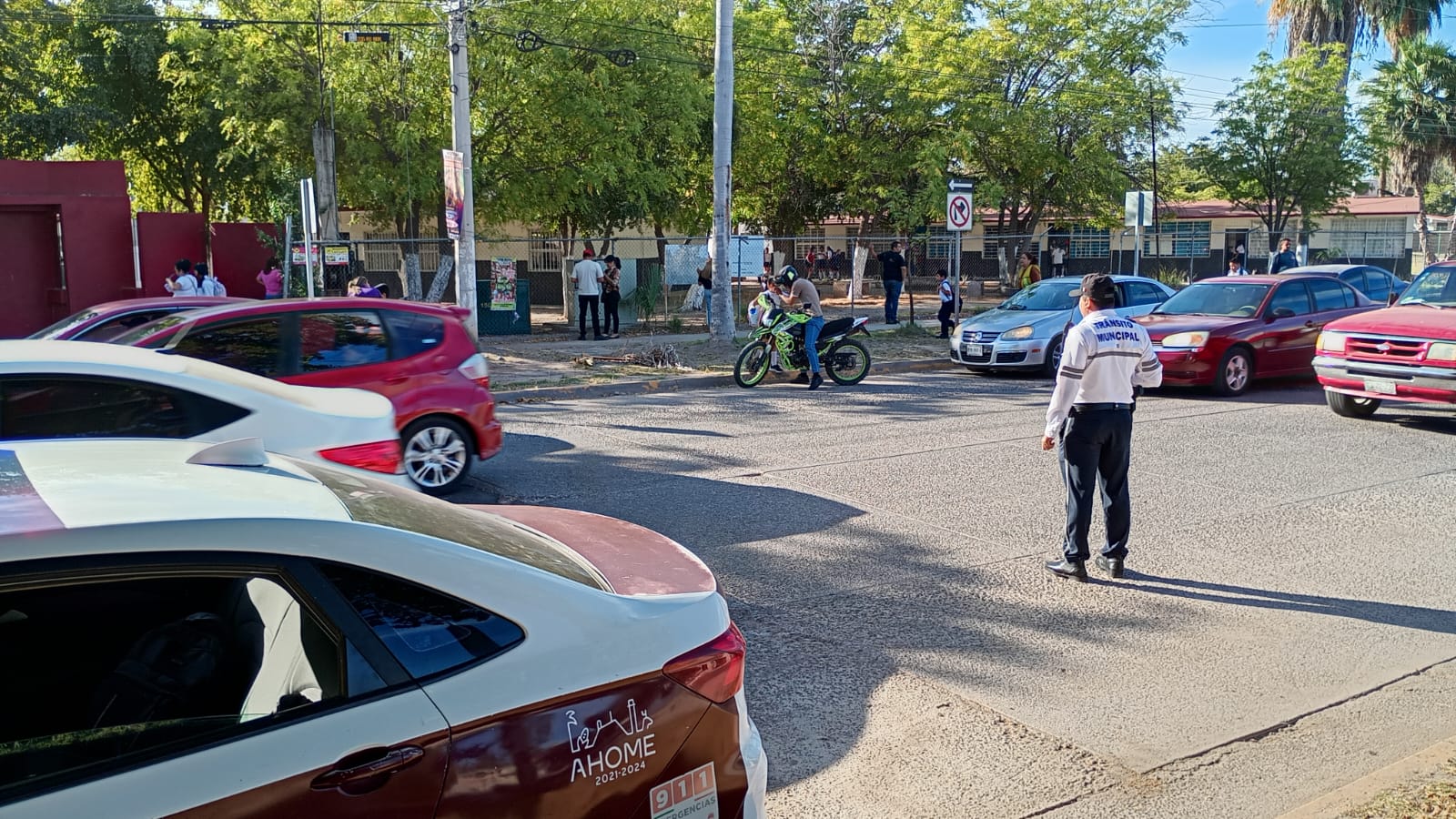 Entrevistado via telefonica, el Director de la Policía de Tránsito en Ahome, comandante Geovanny Villegas Achoy, confirmó que sí, la Policía de Tránsito de Ahome mantiene operativos de vigilancia activos en las afueras de los planteles escolares.