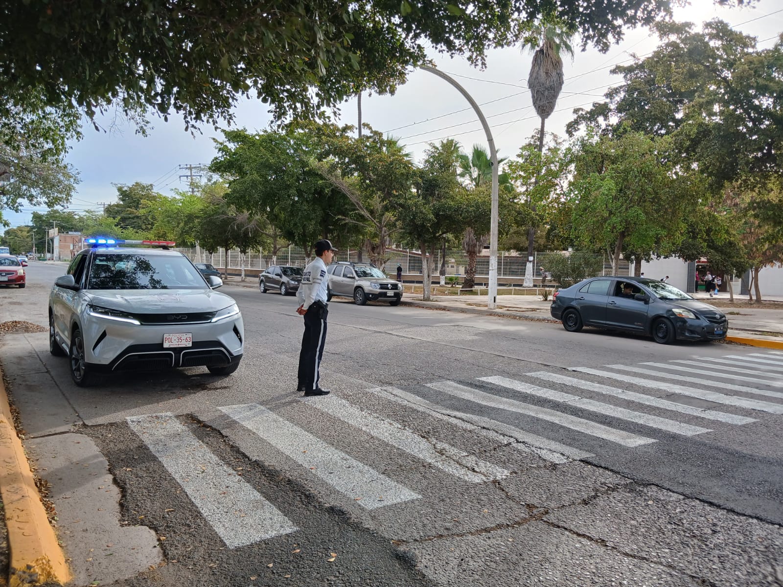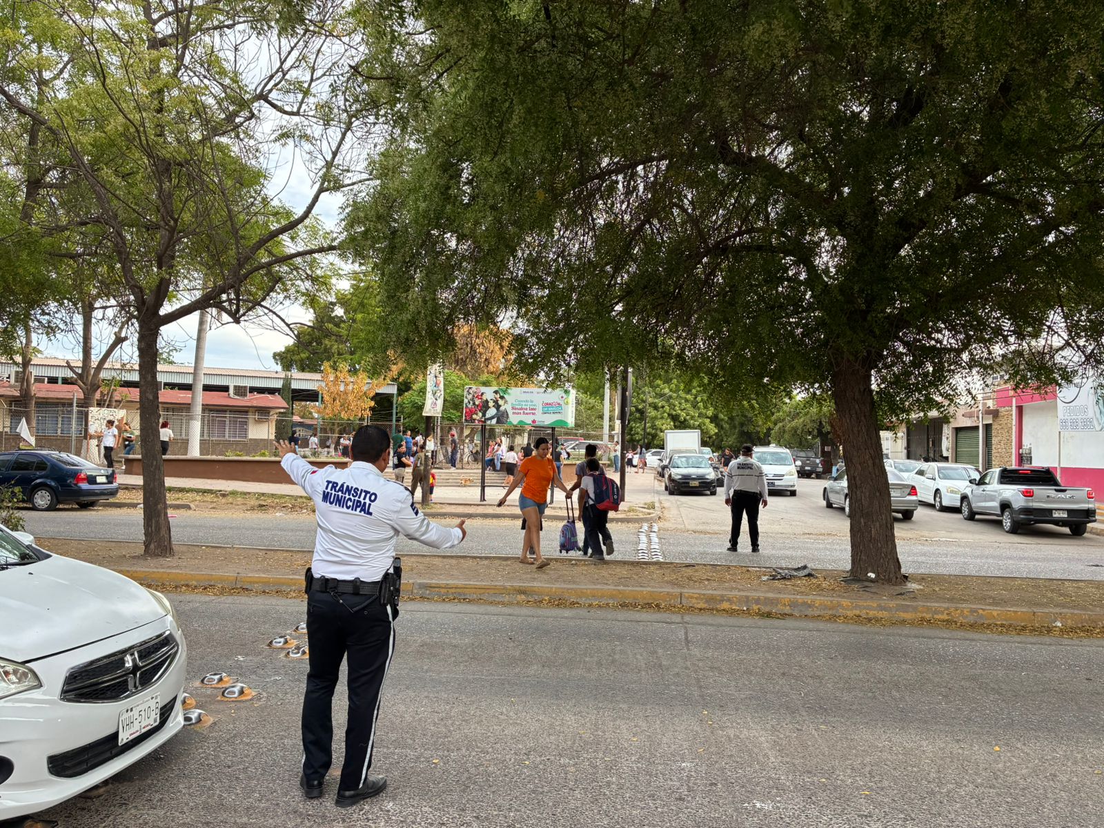 Los agentes viales se desplegaron en puntos estratégicos y zonas escolares de alta afluencia en las avenidas principales de Los Mochis para agilizar la movilidad y prevenir accidentes durante el retorno de miles de estudiantes.