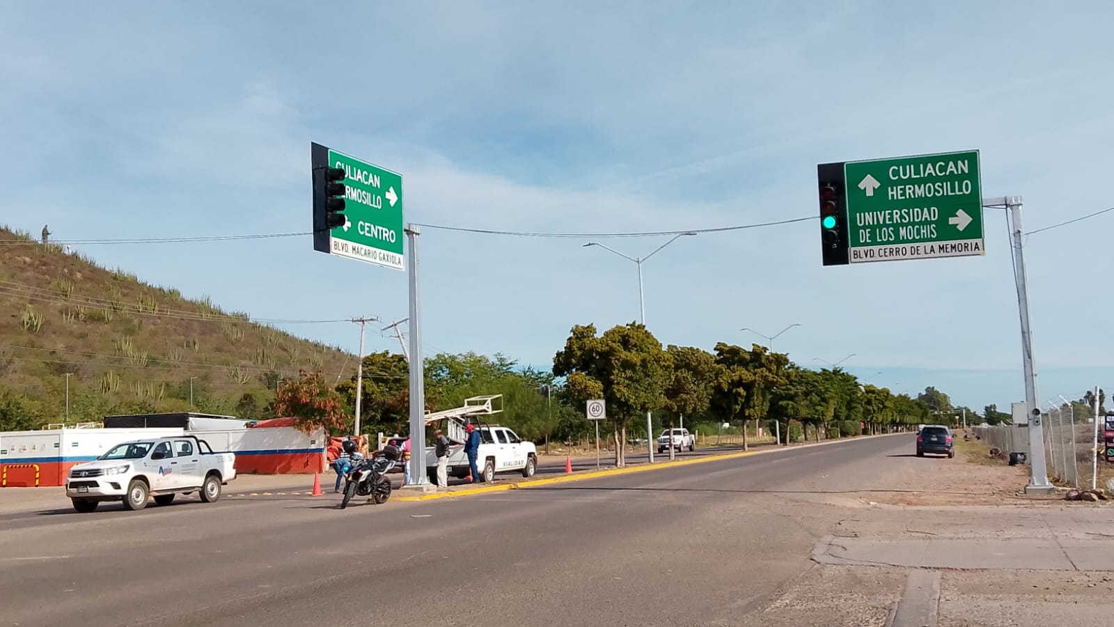 Los Mochis, Ahome, Sinaloa. A 30 de Enero de 2026.- Con el objetivo de mejorar la movilidad urbana y fortalecer la seguridad vial, el Ayuntamiento de Ahome activó los semáforos en el cruce de los bulevares Macario Gaxiola y Cerro de la Memoria, punto considerado de alta carga vehicular, principalmente por la cercanía con la Universidad de Los Mochis (UDLM) y los fraccionamientos aledaños.