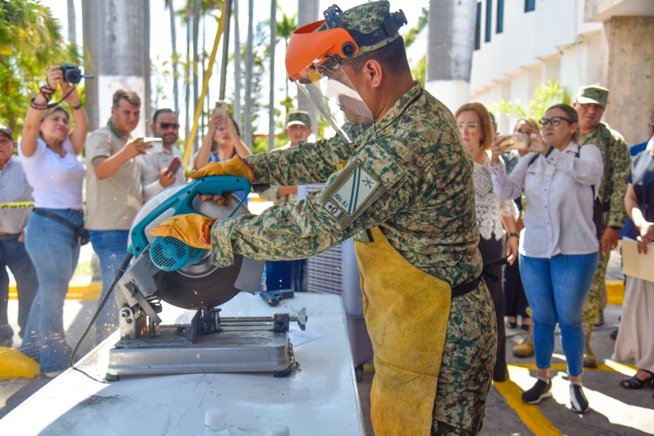 “Decir sí a la paz es una invitación para sacar de los hogares sinaloenses las armas de fuego y explosivos, evitando así suicidios, violencia familiar y lesiones. Nos hemos propuesto la meta de destruir al menos 950 armas en todo el estado, y estamos seguros de que Ahome será un ejemplo en esta tarea”, señaló.