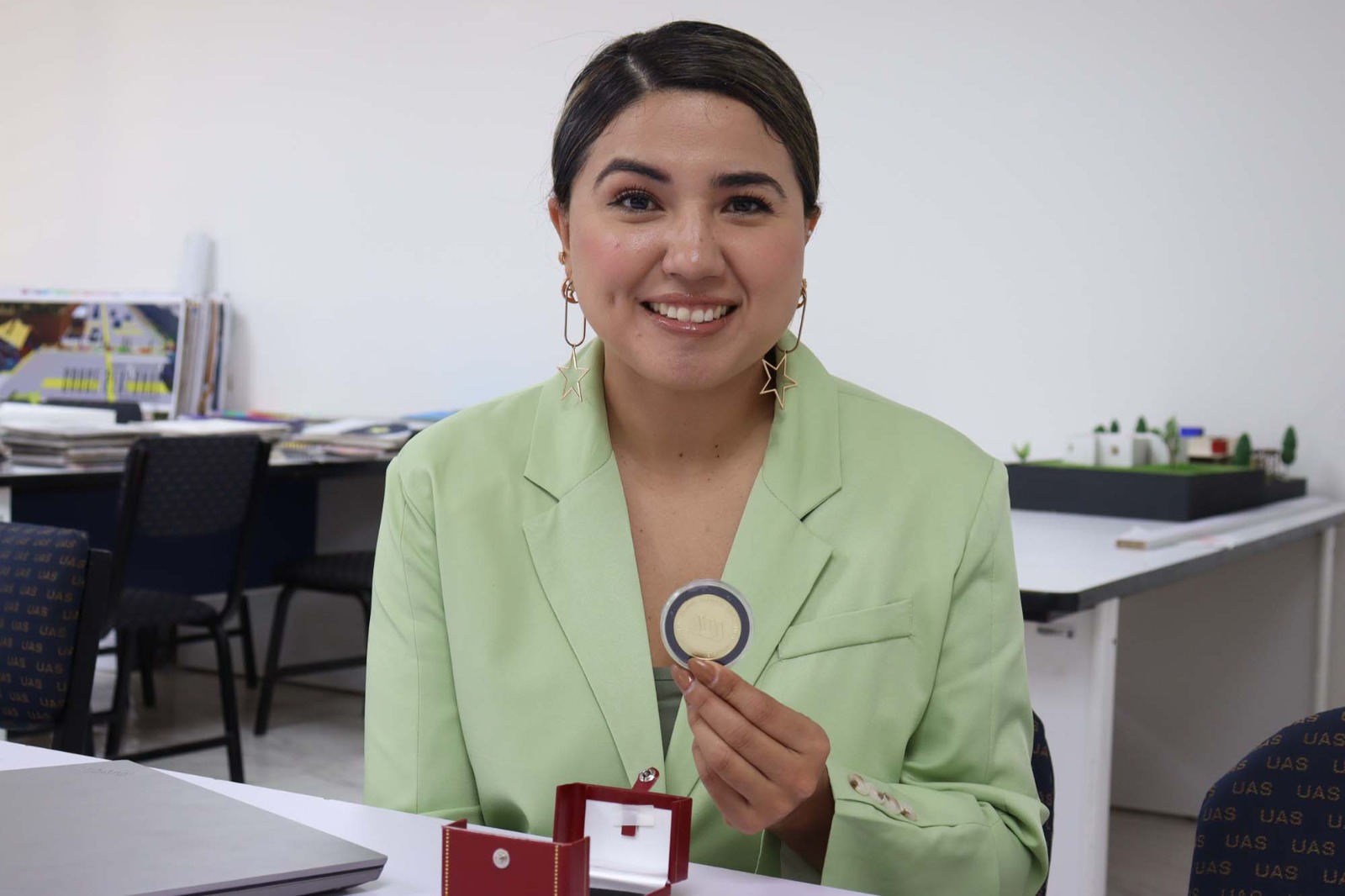 Asimismo, se mostró orgullosa de representar a la Universidad Autónoma de Sinaloa y de ser una profesora más, como las muchas que hay, especializada en posgrado y con medalla.
