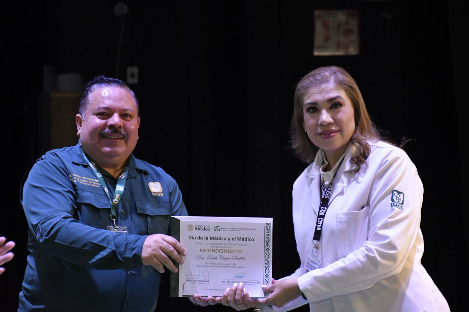 Como parte central del evento, se hizo entrega de reconocimientos a 46 médicas y médicos destacados por su desempeño excepcional durante el año 2024, mujeres y hombres cuyo trabajo ejemplar refleja la esencia del IMSS y su compromiso con la salud pública.
