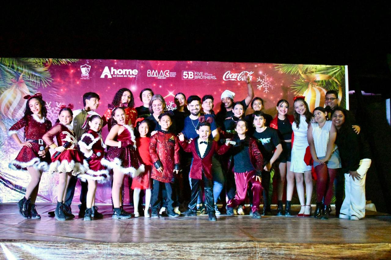 El espectáculo abrió con el grupo infantil Los Nunies, conformado por Antonio López, Damiana Osuna, Enya Victoria, Miguel Ángel, Cristopher, Liam Victoria y Larissa López, quienes llenaron el escenario de magia y alegría bajo la dirección de Enrique Castro, de la academia de artes Clave Sol.