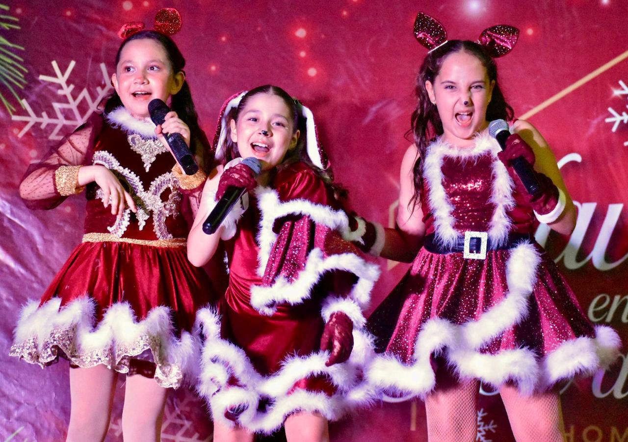El espectáculo abrió con el grupo infantil Los Nunies, conformado por Antonio López, Damiana Osuna, Enya Victoria, Miguel Ángel, Cristopher, Liam Victoria y Larissa López, quienes llenaron el escenario de magia y alegría bajo la dirección de Enrique Castro, de la academia de artes Clave Sol.